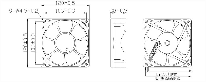 EC轴流散热风扇12038安装尺寸图纸: