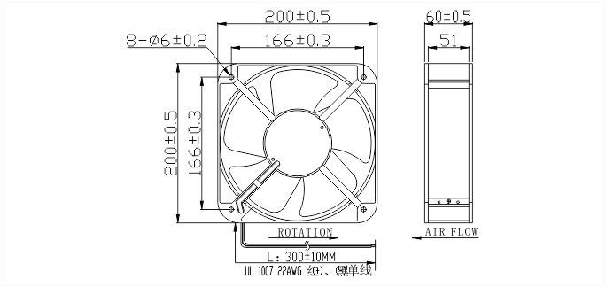 交流轴流散热风扇AC20060安装尺寸图纸: