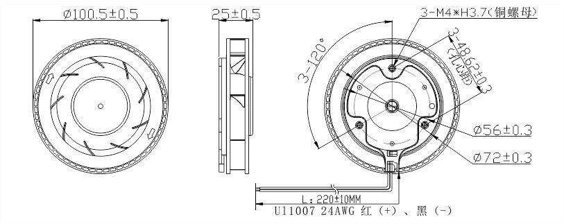 直流离心DCC10025散热风扇安装尺寸图纸: